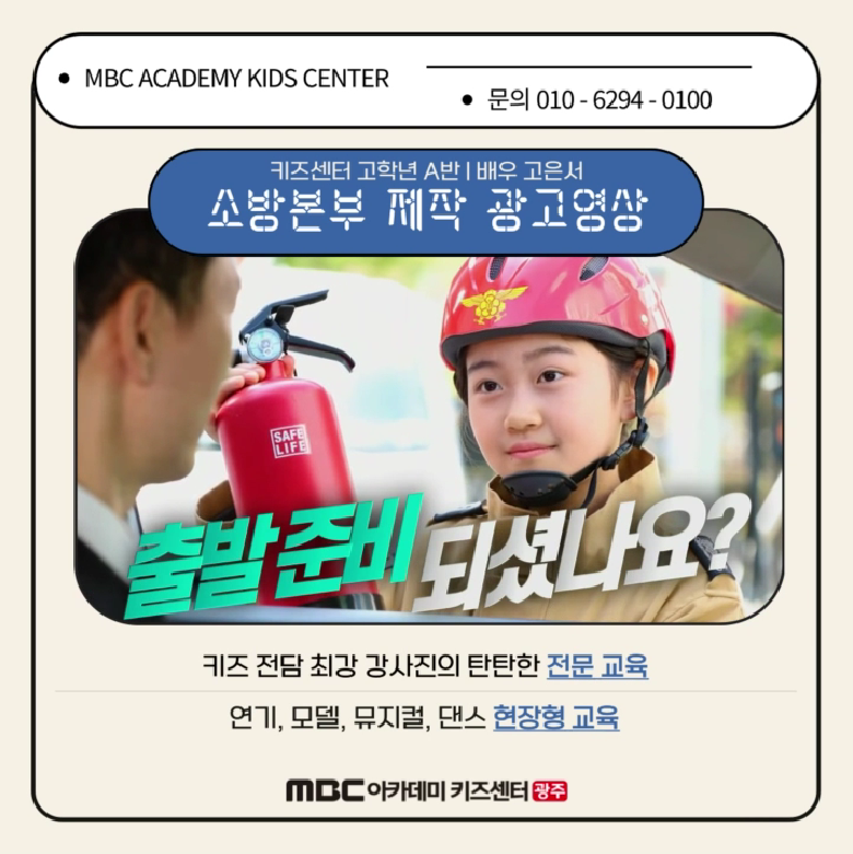 [키즈센터] 소방본부 제작 광고 촬영! 페이지 정보 작성자MBC아카데미연극음악원광주 댓글 0건 조회 3,653회 작성일 23-10-03 18:37 본문 목록 이전글[키즈센터] "고은서" SBS 모닝와이드 촬영! 23.10.25 다음글인터내셔널 슈퍼퀸 슈퍼스타 키즈모델 콘테스트 대상/은상 수상! 23.09.20
