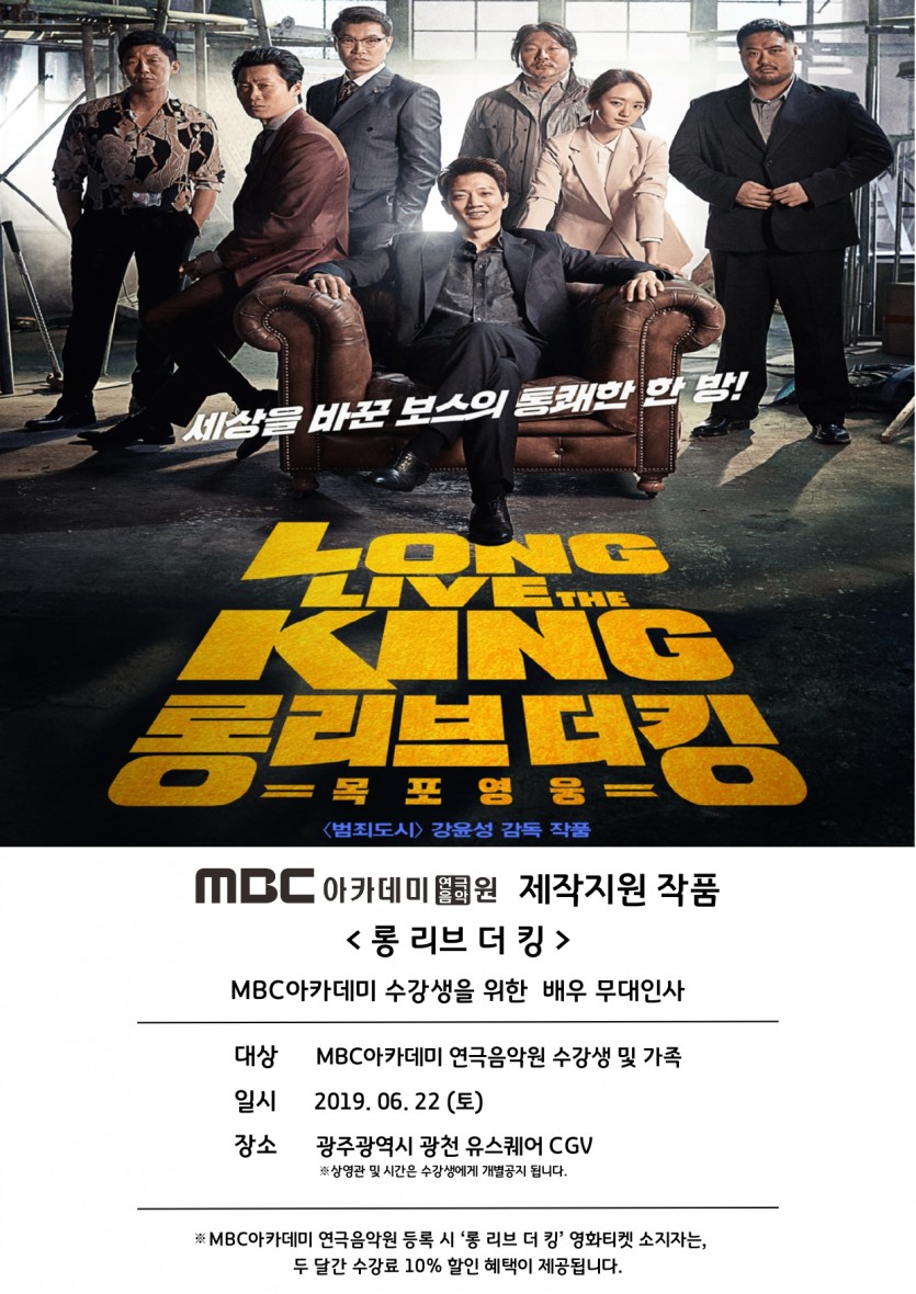 MBC아카데미 제작지원 영화 '롱 리브 더 킹' 수강생 시사회 페이지 정보 작성자 관리자 댓글 0건 조회 32,465회 작성일 19-06-19 20:42 본문 MBC아카데미 제작지원 영화 '롱 리브 더 킹' 수강생 시사회 목록 이전글 [모델센터] 11기 모델캠프 19.06.28 다음글 [연기센터] 모델연기반 개강 19.05.21