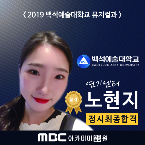 <2019학년도 실시간 합격자 발표> 백석예술대학교 정시 최종합격 - 연기센터 노현지