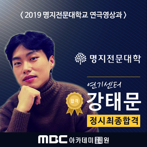 <2019학년도 실시간 합격자 발표> 명지전문대학 정시 최종합격 - 연기센터 강태문