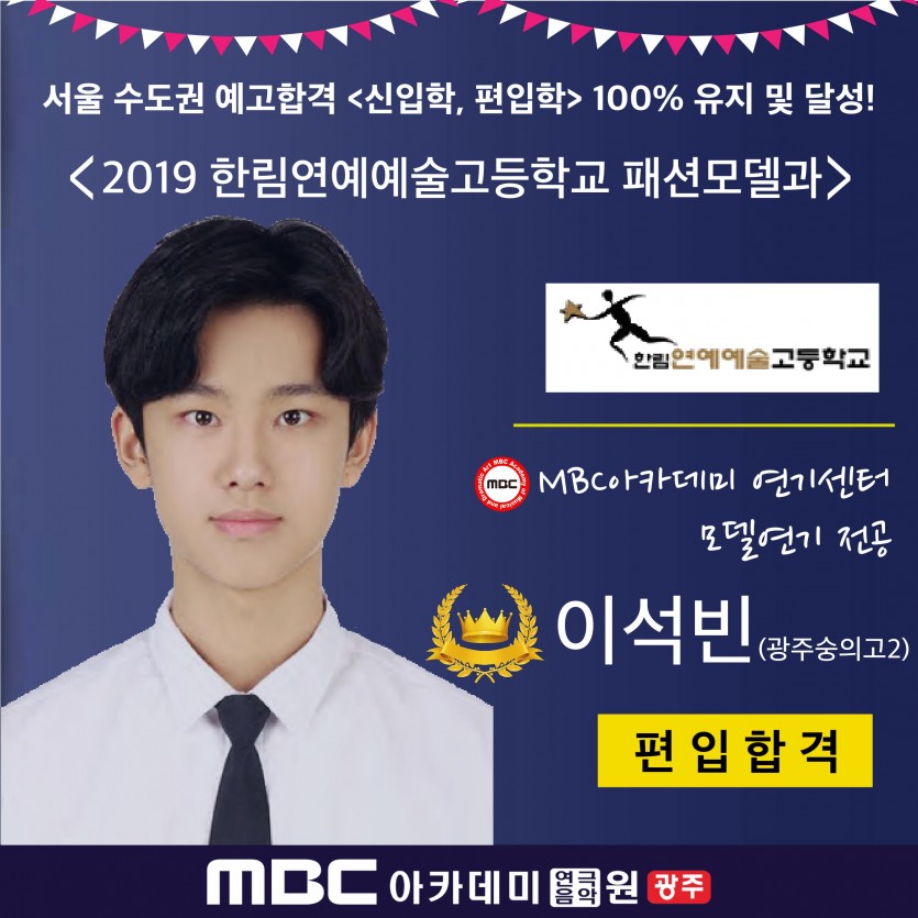 [연기센터-모델연기전공] 이석빈 학생 한림예고 편입학 합격 페이지 정보 작성자 관리자 댓글 0건 조회 33,223회 작성일 19-04-05 17:40 본문 [연기센터-모델연기전공] 이석빈 학생(숭의고 2) 한림예고 편입학 합격 목록 이전글 한예종 연극원 연기과 2020학년도 모집요강 19.04.05 다음글 2019년 전국 청소년 독백&연기 경연대회 준비반 모집 19.03.08