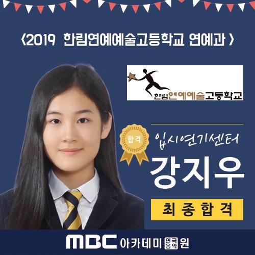 <2019학년도 실시간 합격자 발표> 한림연예예술고등학교 최종합격 - 연기센터 강지우