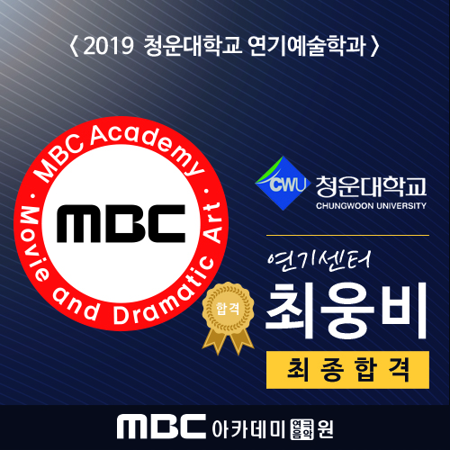 <2019학년도 실시간 합격자 발표> 청운대학교 수시 최종합격 - 연기센터 최웅비 페이지 정보 작성자 관리자 댓글 0건 조회 32,436회 작성일 18-12-31 17:42 본문 <2019학년도 실시간 합격자 발표> 청운대학교 수시 최종합격 - 연기센터 최웅비 목록 이전글 2019 주말입시반 개강 19.01.03 다음글 <2019학년도 실시간 합격자 발표> 군장대학교 수시 최종합격 - 연기센터 정선호 18.12.31