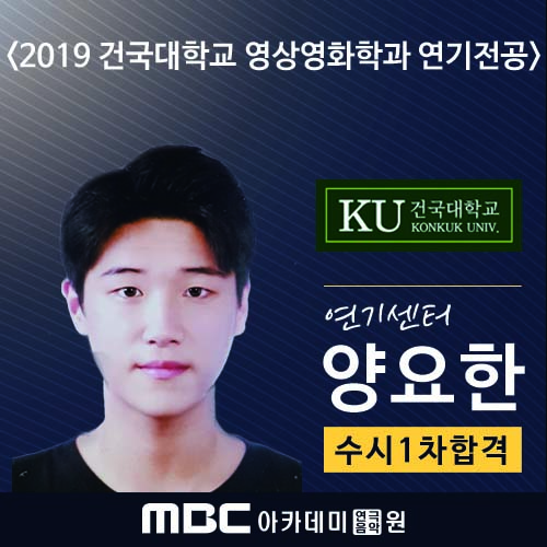 <2019학년도 실시간 합격자 발표> 건국대 수시 1차합격 - 연기센터 양요한