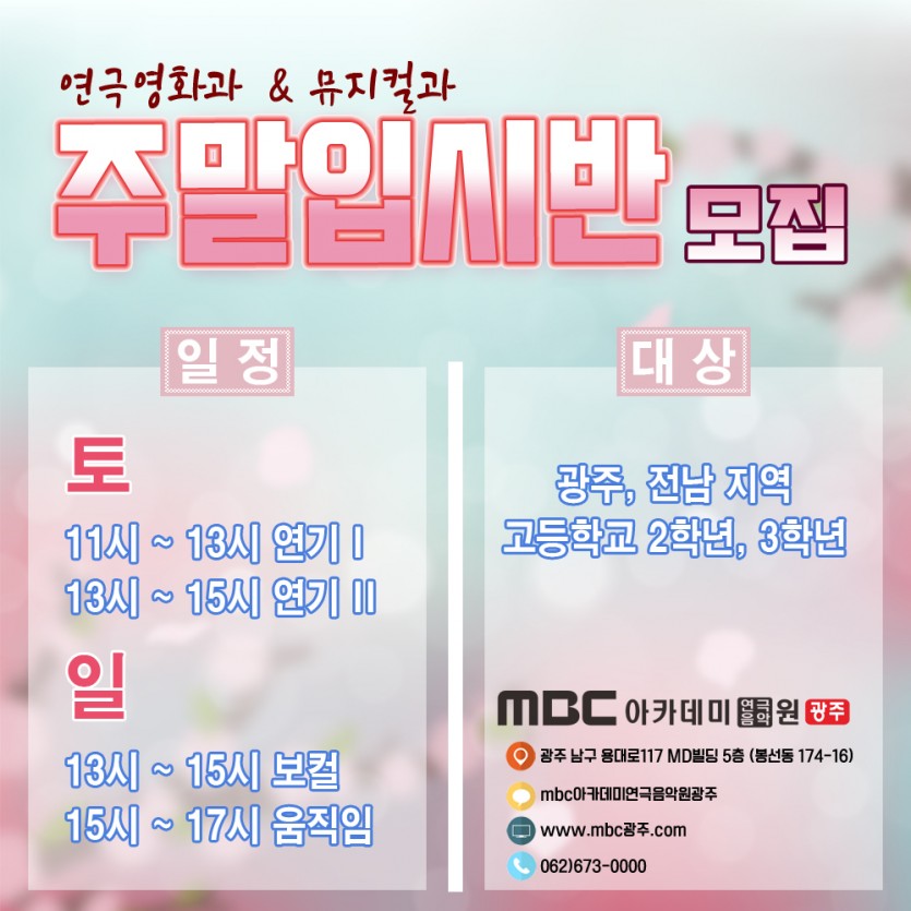 주말입시반 모집 페이지 정보 작성자 관리자 댓글 0건 조회 31,879회 작성일 18-03-21 18:53 본문 주말입시반 모집 목록 이전글 주말입시반 모집 - 다녀보고 결정하자! 18.03.22 다음글 다녀보고 결정하자 - 수강료 무료 이벤트 18.03.08
