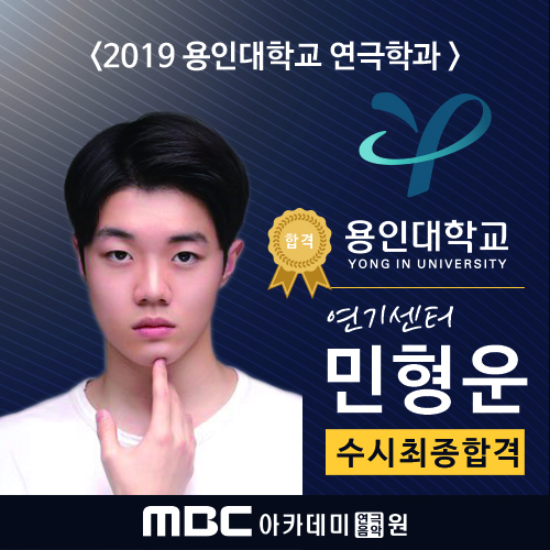 <2019학년도 실시간 합격자 발표> 용인대 수시 최종합격 - 연기센터 민형운