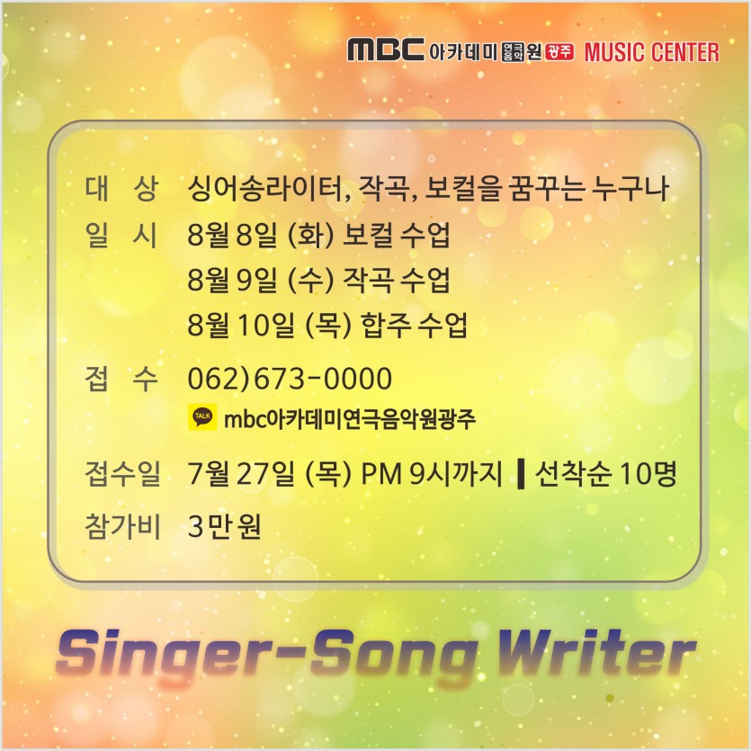 싱어송라이터 체험수업에 많은참여 부탁드립니다 ^^