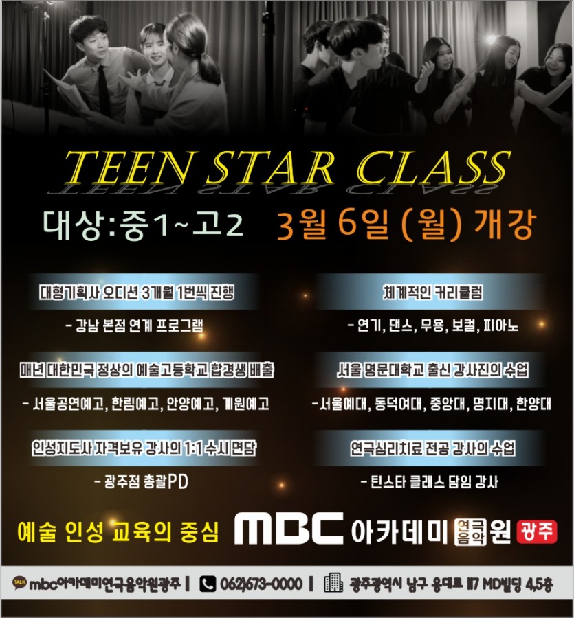 틴스타반 개강!!!!!! 페이지 정보 작성자 관리자 댓글 0건 조회 30,546회 작성일 17-02-23 19:59 본문 대상 : 중1~고2 3월 6일 (월) 개강 목록 이전글 입시대비반&틴스타반 에쮸드 발표회 17.02.27 다음글 "사임당"윤상호 감독님, "치외법권"신동엽 감독님의 배우수업 17.02.15