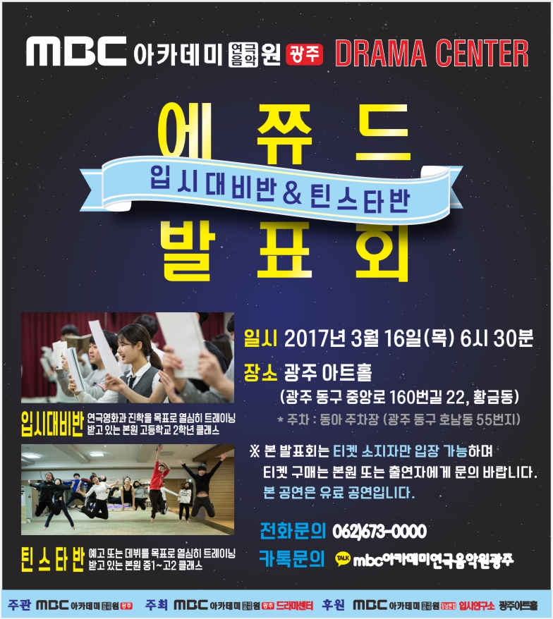 입시대비반&틴스타반 에쮸드 발표회 페이지 정보 작성자 관리자 댓글 0건 조회 29,799회 작성일 17-02-27 22:29 본문 에쮸드 발표회 목록 이전글 대학입시반&재입시반 에쮸드 발표회 17.02.28 다음글 틴스타반 개강!!!!!! 17.02.23