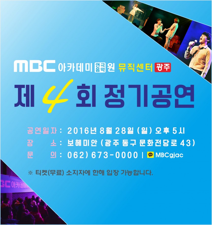 MBC 아카데미 예술원 [광주] 뮤직센터에서 제4회 정기공연을 준비했습니다.
