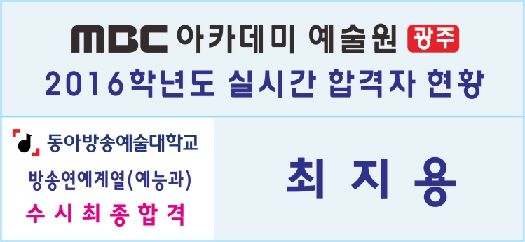 2016학년도 실시간 합격자 현황 [동아방송예대] 페이지 정보 작성자 관리자 댓글 0건 조회 28,001회 작성일 15-11-04 18:45 본문 2016학년도 실시간 합격자 현황 [동아방송예대] 목록 이전글 2016학년도 실시간 합격자 현황 [청운대] 15.11.05 다음글 2016학년도 실시간 합격자 현황 [전주대] 15.10.30