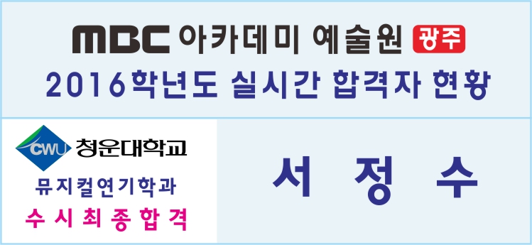 2016학년도 실시간 합격자 현황 [청운대] 페이지 정보 작성자 관리자 댓글 0건 조회 28,159회 작성일 15-11-05 18:15 본문 2016학년도 실시간 합격자 현황 [청운대] 목록 이전글 2016학년도 실시간 합격자 현황 [대진대] 15.11.06 다음글 2016학년도 실시간 합격자 현황 [동아방송예대] 15.11.04