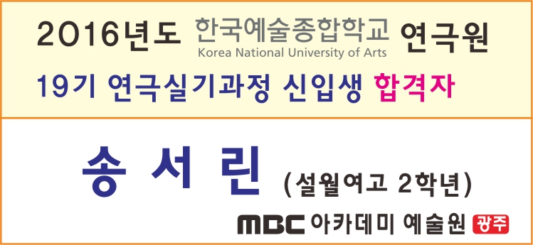 한예종 연극원 19기 연극실기과정 신입생 합격자 페이지 정보 작성자 관리자 댓글 0건 조회 29,455회 작성일 15-11-27 22:38 본문 한예종 연극원 19기 연극실기과정 신입생 합격자 목록 이전글 2016학년도 실시간 합격자 현황 [백석예대] 15.12.09 다음글 2016학년도 실시간 합격자 현황 [계원예고] 15.11.16