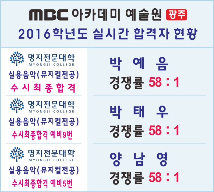 2016학년도 실시간 합격자 현황 [명지전문] 페이지 정보 작성자 관리자 댓글 0건 조회 27,327회 작성일 15-10-19 20:36 본문 2016학년도 실시간 합격자 현황 목록 이전글 2016학년도 실시간 합격자 현황 [세종대] 15.10.19 다음글 2016학년도 실시간 합격자 현황 [수원대] 15.10.19