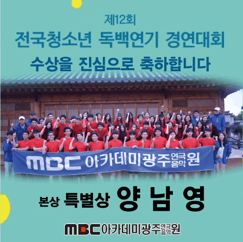 본상 "특별상" 수상 12회 전국 청소년 독백연기 경연대회