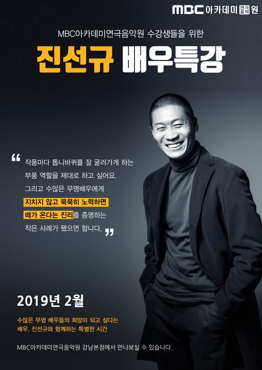 <배우특강> 진선규 배우 페이지 정보 작성자 관리자 댓글 0건 조회 26,446회 작성일 19-02-08 19:53 본문 <배우특강> 진선규 배우 목록 이전글 신학기 특별 EVENT - 다녀보고 결정하자 19.04.02 다음글 모델센터 <10기 모델캠프> 18.11.30