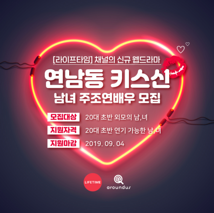라이프타임 채널 신규 웹드라마 <연남동 키스신> 의 주조연 배우를 모집합니다.