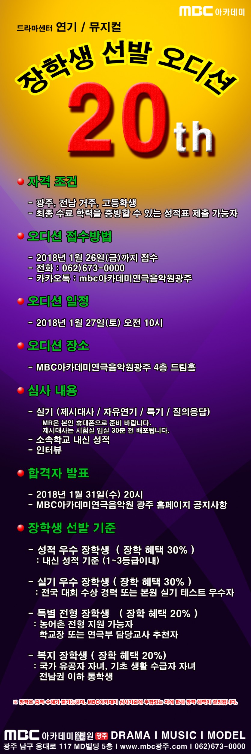 [드라마센터] 20주년 기념 장학생 선발 오디션 - 연기 / 뮤지컬