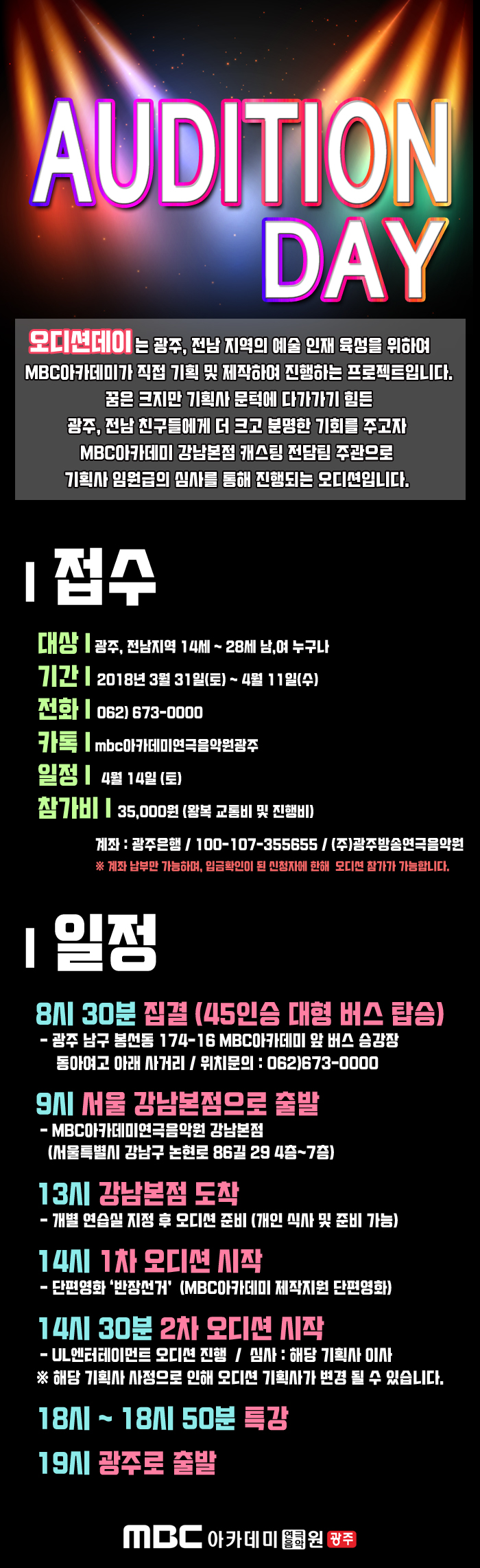 4.14 오디션데이 페이지 정보 작성자 관리자 댓글 0건 조회 24,957회 작성일 18-03-31 12:11 본문 4.14 서울 강남본점에서 진행하는 오디션데이! 목록 이전글 6월 오디션 작품 LIST 18.06.16 다음글 수강생 프로필 무료 촬영 18.03.24
