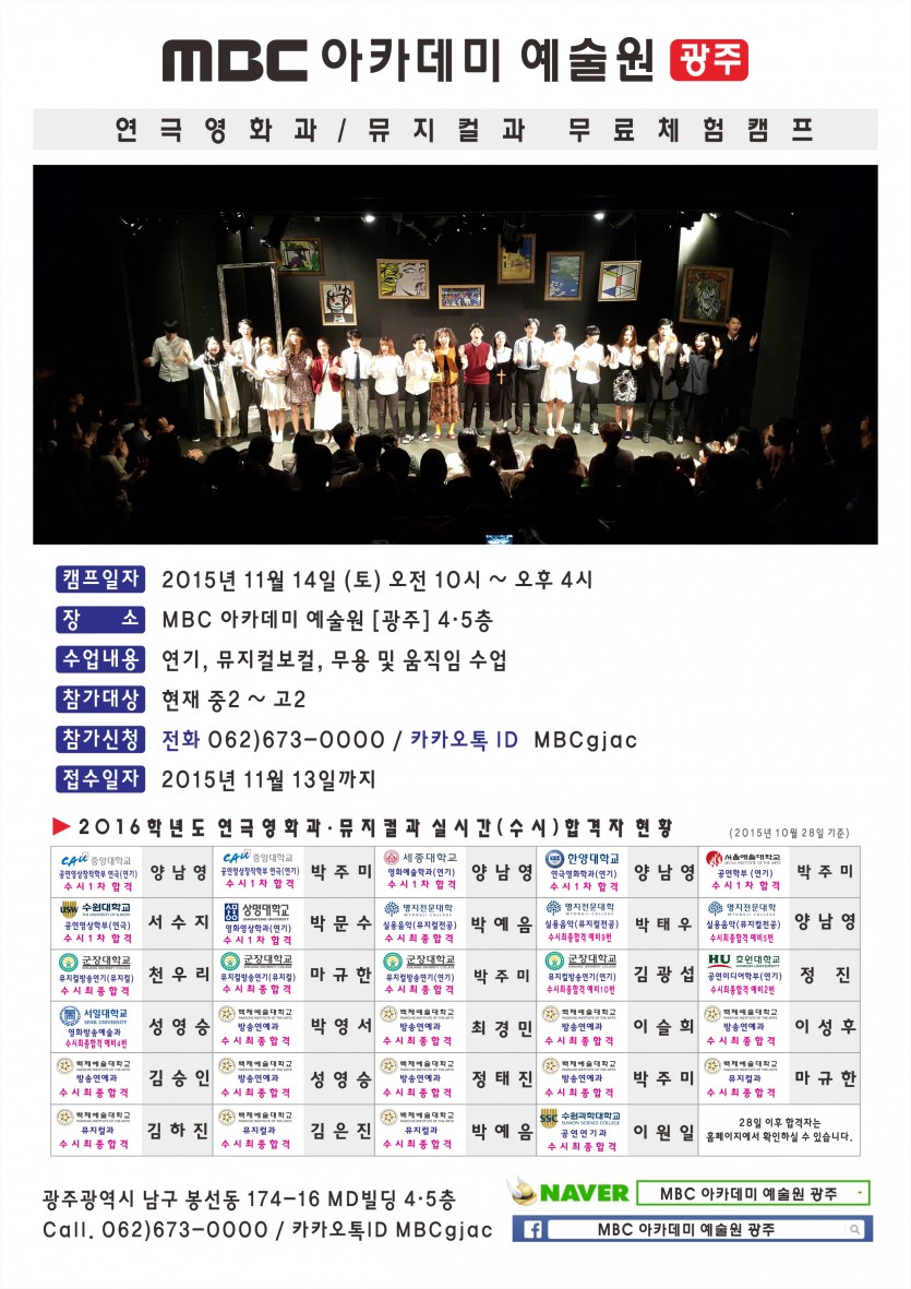 연극영화과 / 뮤지컬과 무료 체험캠프 페이지 정보 작성자 관리자 댓글 0건 조회 23,763회 작성일 15-10-29 15:31 본문 연극영화과 / 뮤지컬과 무료 체험캠프 목록 이전글 실용보컬/뮤지컬 무료체험캠프 15.12.03 다음글 실용보컬/실용뮤지컬 체험캠프 15.10.02